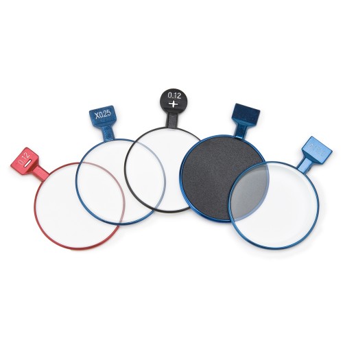 Вспомогательный линзы используются для дополнительного исследования зрения (окклюдер, точечная диафраагма, щелевая диафрагма, красный светофильтр, зеленый светофильтр, скрещенный цилиндр).
