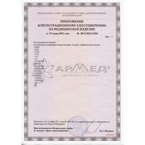 Светильник медицинский хирургический, 100203005, Медицинское оборудование и сопутствующие товары