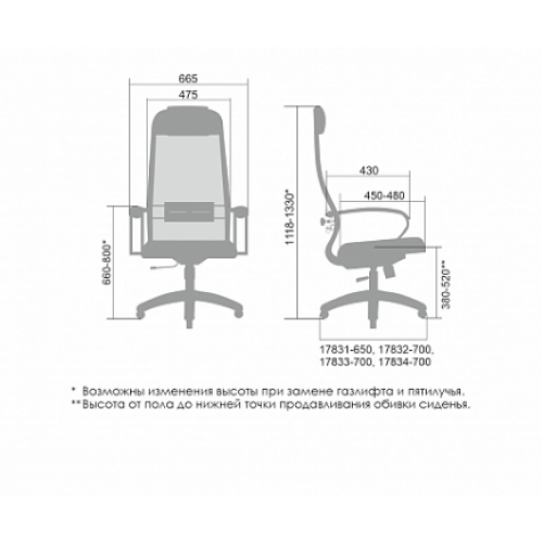 ** Высота сиденья в верхнем и нижнем положении может быть изменена, в зависимости от модели применяемого газ-лифта.