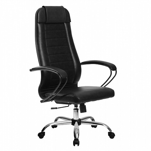 Спинка: высокая с мягким подголовником, черное полимерное покрытие каркаса ширина 475 мм;