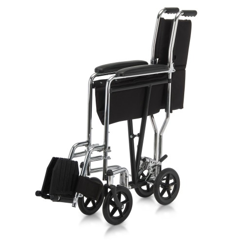 Рама кресла-коляски - складная, изготовлена из металлического сплава с хромовым покрытием.