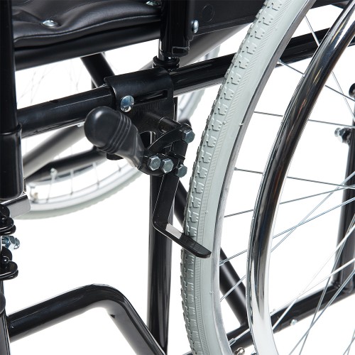 Кресло-коляска снабжена рычагами стояночного тормоза слева и справа.