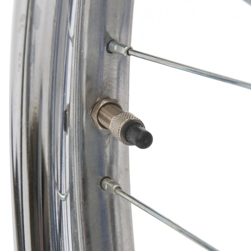 Кресло-коляска оснащена колесами, имеющие передние цельнолитые и задние пневматические шины.