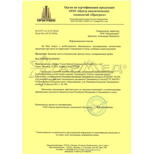 Рабочее давление (± 5%): -75 кПа